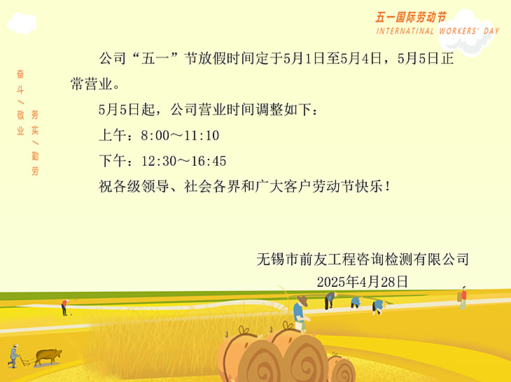 網(wǎng)址: http://www.qkdnnee.cn| 關(guān)于“五一”勞動(dòng)節(jié)放假及節(jié)后營(yíng)業(yè)時(shí)間調(diào)整的公告 | ||